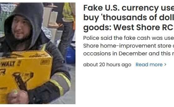 Police said the fake cash was used at a West Shore home-improvement store on multiple occasions in December and this…