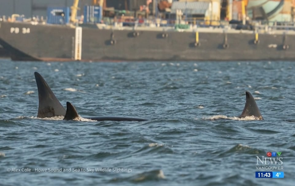The three orcas were first spotted circling in Vancouver’s Burrard Inlet late last week, capturing the attention of onlookers.